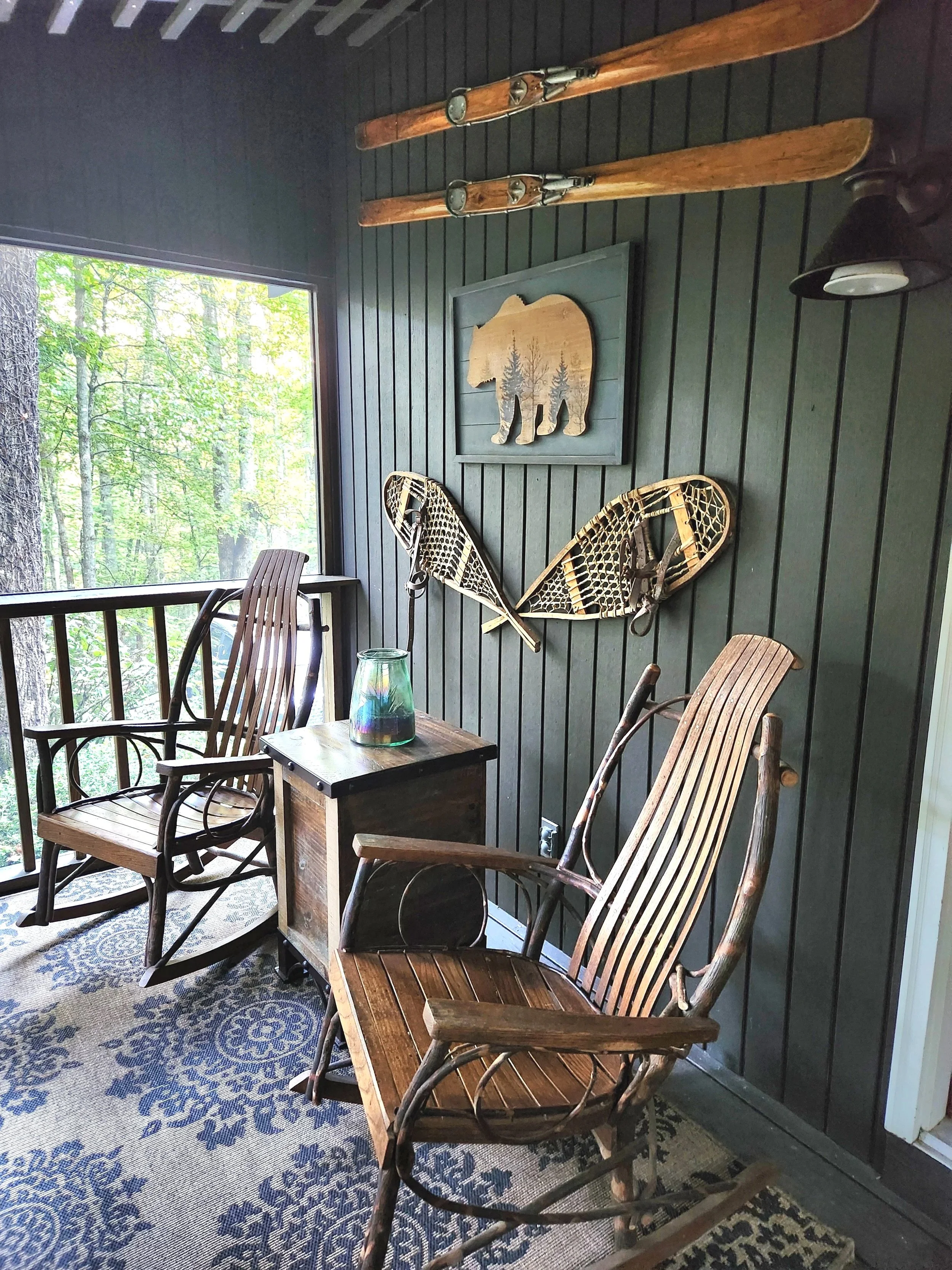 For those who prefer a cabin in the woods vibe. Oozes old-worldly charm. Indoor fireplace. Large deck. Bunk room.